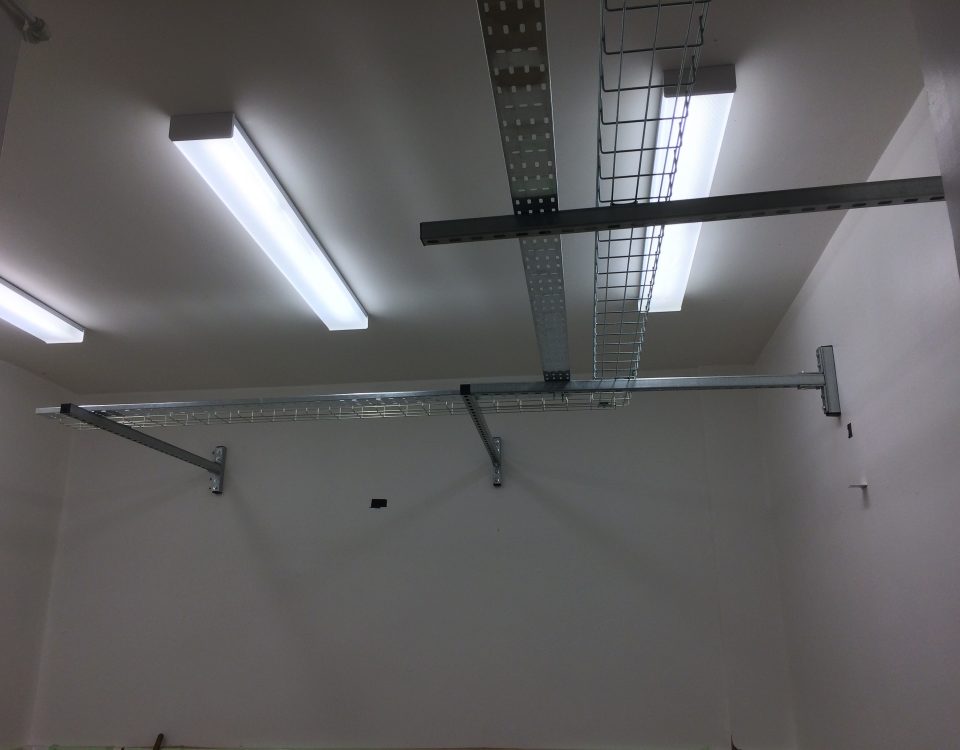 Today we started to put up the cable tray between the old and new server rooms ready for the fibres and telecoms cabling.